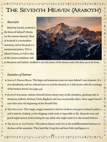 - Information on the Seven Heavens, complete with adventure hooks.